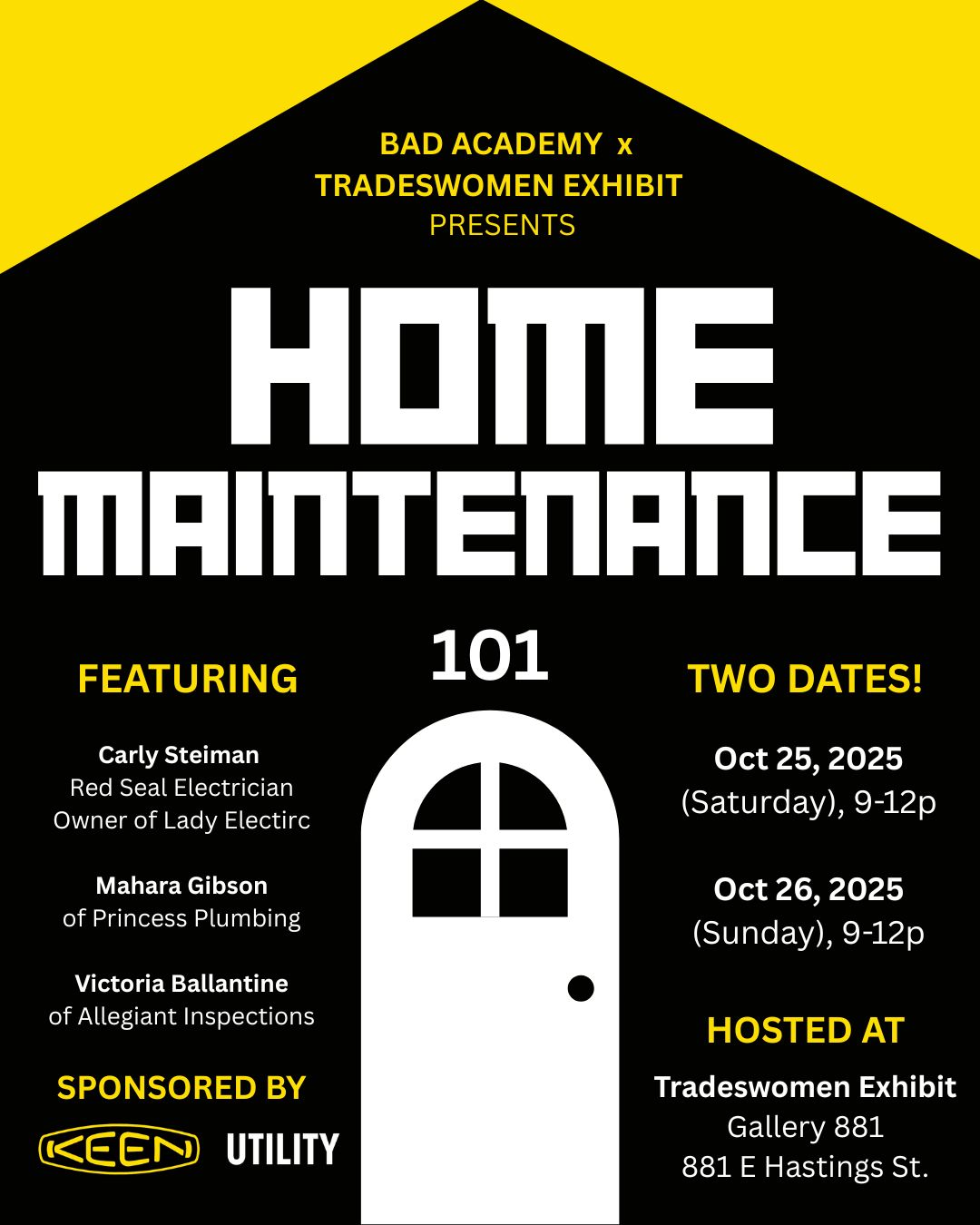 Put down that phone and tell your dad to stand down! Bad Academy is here to show you around the basics in this crash course on home maintenance! We've assembled the Baddest crew of trades women to tell it to you straight so you can save the headache and maybe even some cash by doing it yourself! In this exciting new workshop, you'll get to not only hear some tricks of the trade from our panel of passionate experts, but gain the confidence you've always needed to really kick back and relax in your own home <3