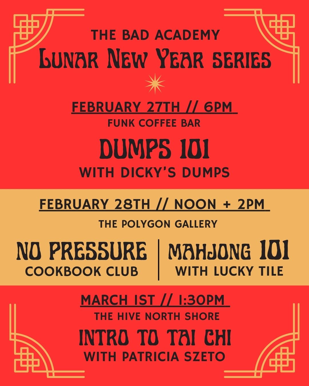 NEE HAW! Welcome to the year of the horse! The Bad Academy is helping you get lucky this Lunar New Year with a buckin' good lineup of some of Vancouver's finest. Come to one, come to all! Let's celebrate a new year and new skills!