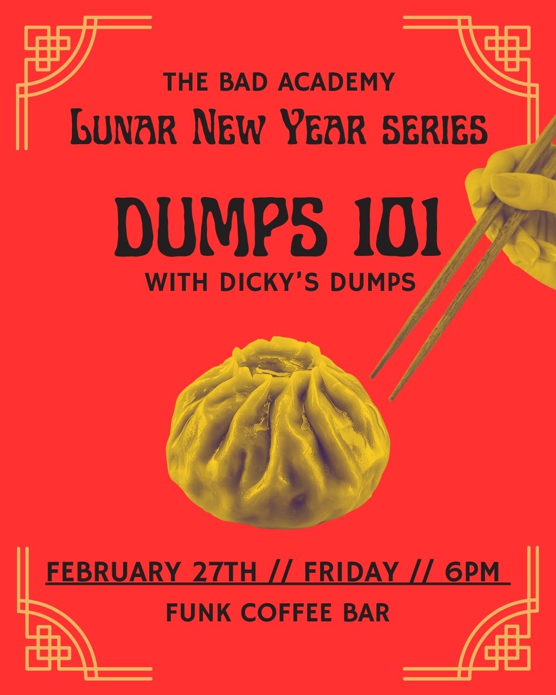 Come learn from the local legends Dicky's Dumps as we wrap battle some delicious dumplings alongside delicious drinks by FUNK right in the heart of downtown Vancouver! Pearl Lam and Dickson Li founded Dicky's Dumps in 2018 out of a desire to create meaningful work that combines a love of community, culture, food, and fun. In this workshop we'll learn all about this classic Chinese dish, several different wrapping techniques, and of course eat dumplings.